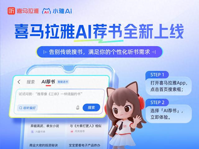 近日,喜马拉雅正式推出“AI荐书”功能。该功能由旗下智能语音助手“小雅AI”驱动,标志着喜马拉雅App搜索能力的又一次AI智能化飞跃。其不仅能向用户提供个性化的智能内容推荐,还支持一键订阅收听及生成专属听单。用户只需打开喜马拉雅App,在首页点击搜索框并选择“AI荐书”,即可开启这一全新的智能荐书体验。